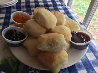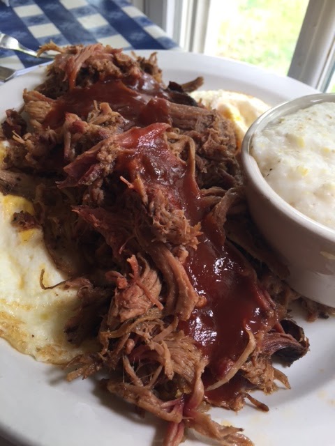 Couple of weeks ago, I paid my first visit to The Loveless Cafe (Nashville, TX). Biscuits and lots of pulled pork, with fried eggs, cornbread, grits, and iced tea.
